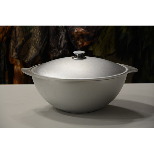 Казан Kukmara 9 л — литой алюминиевый казан с крышкой, предназначенный для приготовления плова, тушёных блюд, супов и других кулинарных изделий на плите или костре. Обеспечивает равномерное распределение тепла, лёгкий и удобный в использовании.