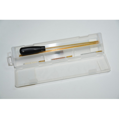 Набор для чистки гладкоствольного оружия калибра 4,5 мм с латунным шомполом диаметром 4 мм, упакованный в удобный кейс для хранения и транспортировки. Комплект включает все необходимые аксессуары для эффективного ухода за оружием.