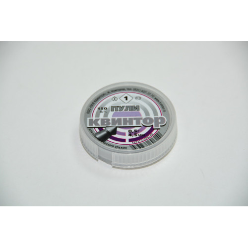Пули Квинтор №1 калибра 4,5 мм — это недорогие свинцовые пули с остроконечной головной частью, предназначенные для стрельбы из пневматического оружия. Обеспечивают хорошую пробивную способность и стабильную траекторию. Подходят для развлекательной, тренировочной стрельбы и охоты на мелкую дичь.