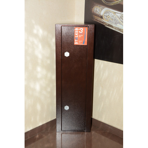 Шкаф оружейный Stalker SBY (угловой) — компактный защитный сейф-шкаф для безопасного хранения огнестрельного оружия и патронов в помещениях с ограниченным местом. Угловая форма позволяет эффективно использовать пространство, размещается в углах комнат или подсобных помещений. Корпус изготовлен из прочной холоднокатаной стали, дверь усилена конструкционными элементами, имеется запираемое отделение для боеприпасов и внутренняя обшивка для защиты прикладов оружия от царапин.